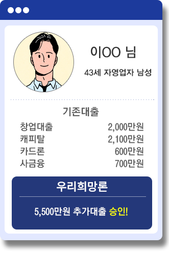 대출금리 : 최대 연 20%이내, 신용도에 따라 차등적용 단 2021년 7월7일부터 신규체결, 갱신, 연장되는 계약에 한함|본 상품은 담보대출과 신용대출 상품입니다.